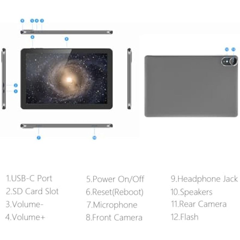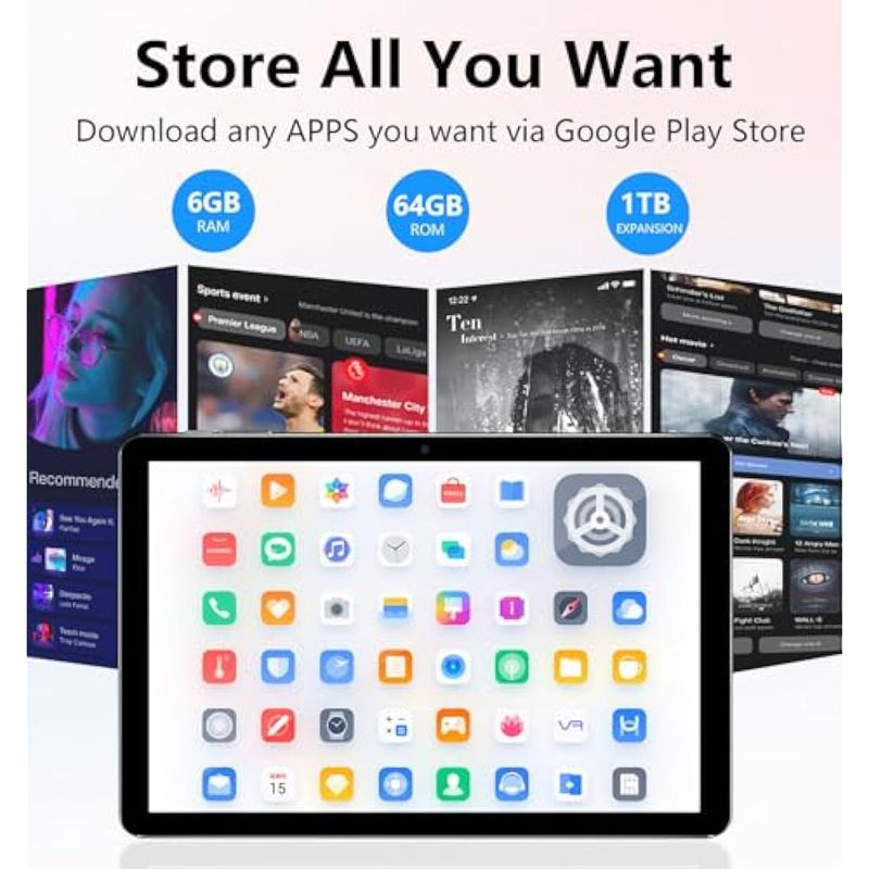 TecnologíaInformáticaTabletsAndroid Tablet, 10.1 inch Android 13 Tablets 6GB RAM 64GB ROM 1TB Expand, 1280x800 IPS HD