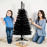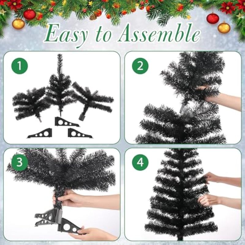 Árbol de Navidad artificial negro de 3 pies, pino de Navidad de mesa con base de soporte de PVC para