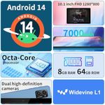 AWOW Tablet de 10 pulgadas con teclado: Android 14 8GB+64GB Widevine L1 8-Core CPU Tablet PC 7000mAh