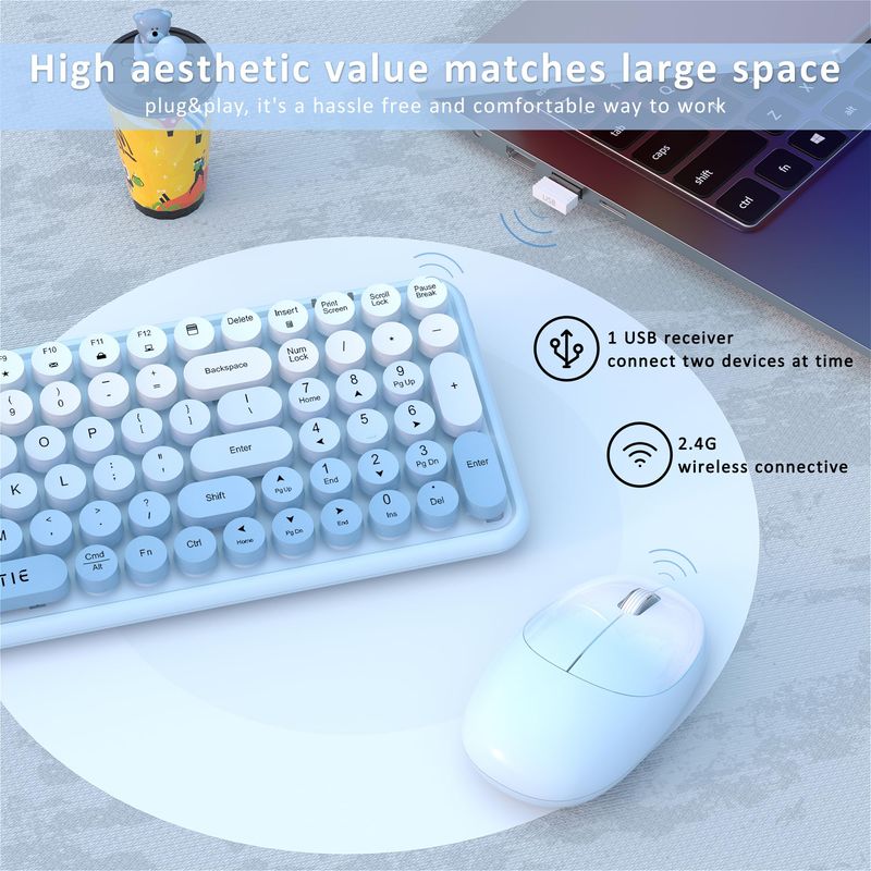 TecnologíaInformáticaAccesoriosCombinación de teclados inalámbricos y mouse, UBOTIE colorido degradado arco iris de colores retro