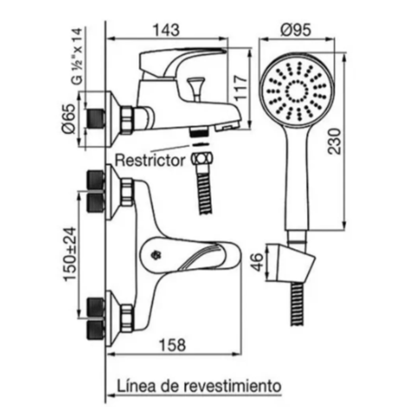 Grifería de Ducha Exterior Monocomando FV Melincue con transferencia Cromo