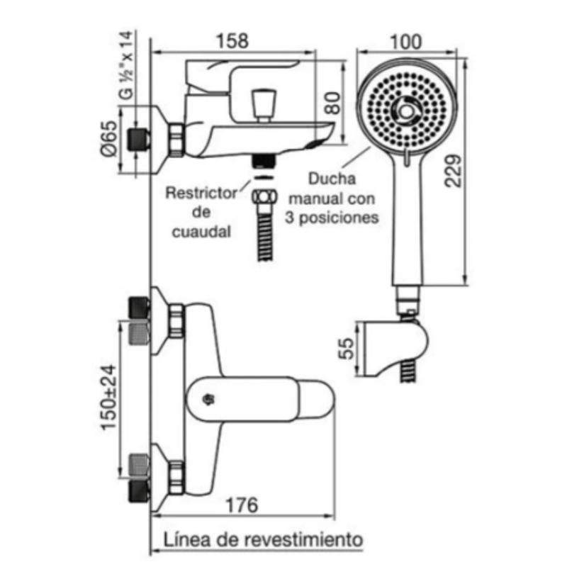 ConstrucciónGriferíasGrifería de Ducha Monocomando con Duchador de Mano FV Coty Cromo
