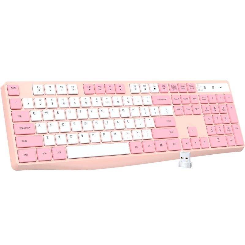 Lovaky MK98 - Teclado inalámbrico ergonómico de 2.4 G, luz indicadora ampliada, teclado de PC de