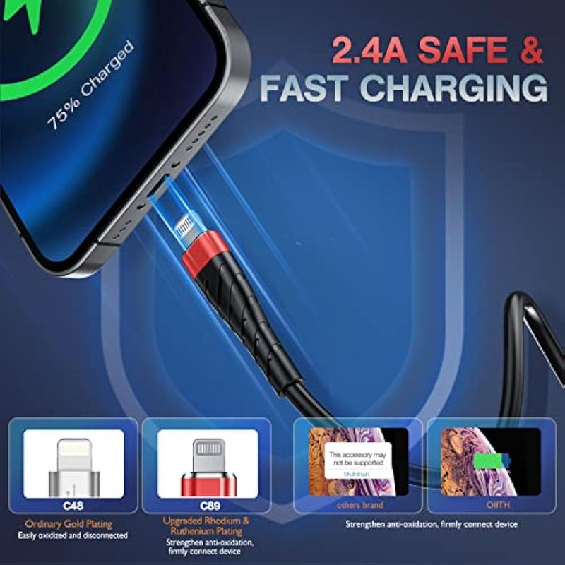 CelularesAccesoriosOIITH Paquete de 3 cables de carga para iPhone con certificación MFi de Apple, cable de carga largo