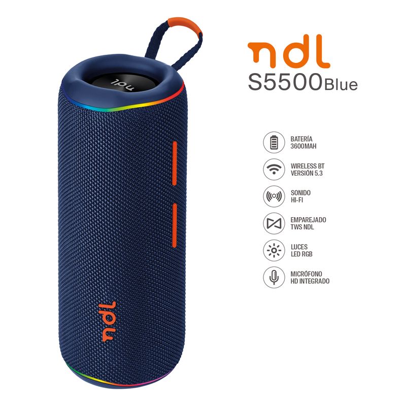 Parlante Port.NDL S5500 20w Bt Aux Rgb Blue