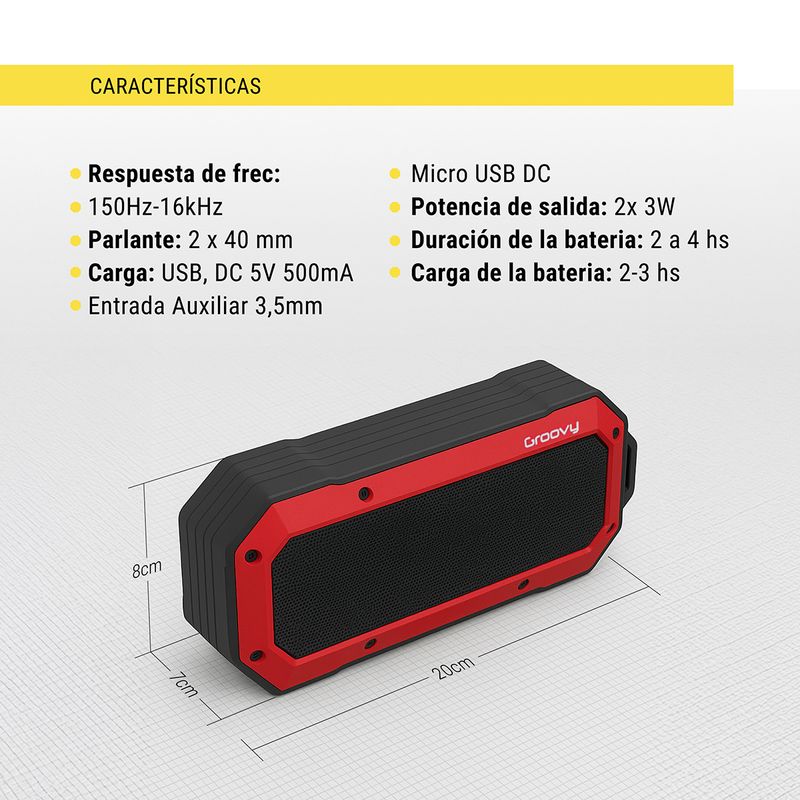 Parlante Bluetooth Portátil Groovy 8X Rojo