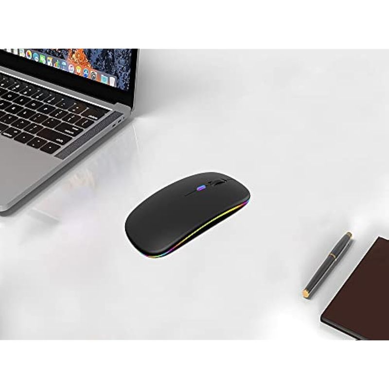 Ratón Bluetooth inalámbrico, mouse LED recargable delgado y silencioso para portátil, portátil