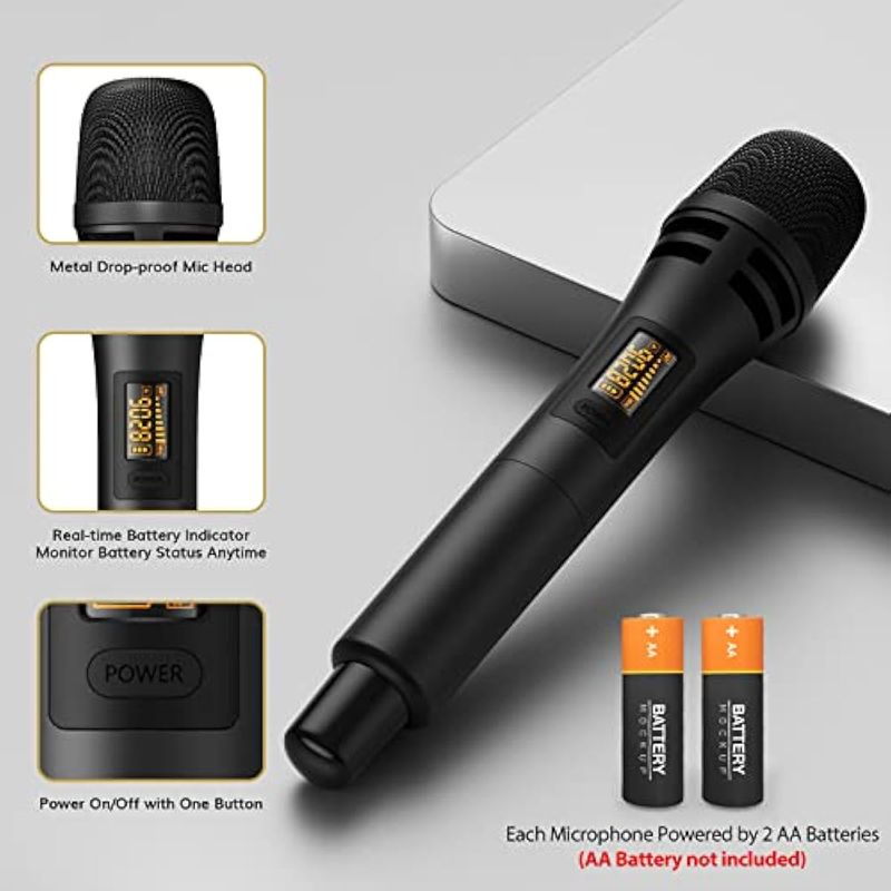 Hogar, jardín y tiempo libreInstrumentos MusicalesTONOR Micrófonos inalámbricos, micrófono dinámico inalámbrico UHF de mano con receptor recargable,