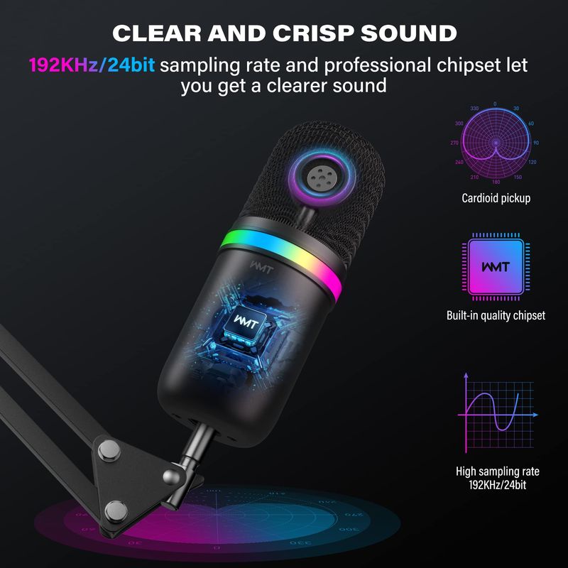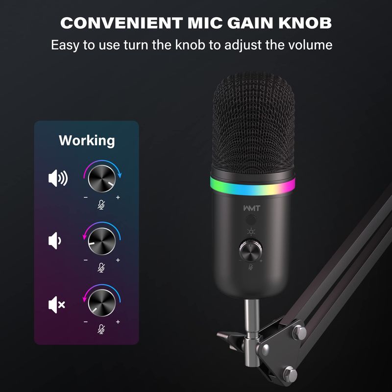WMT Micrófono USB, micrófono de condensador para juegos para PC, MAC, PS4, PS5, teléfono, micrófono